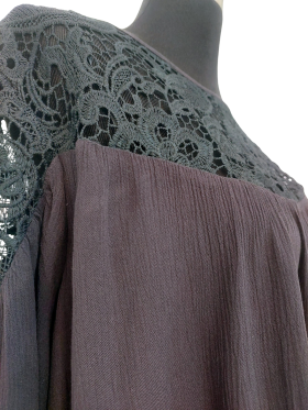 بلوزة - خط عنق دائري، بدون ياقة، كتف عادي، أكمام طويلة عادية (Plain) - أسود, 3XL