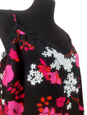 بلوزة - خط عنق شكل ـ V ـ، بدون ياقة، كتف بحمالة رفيعة جدا (Spaghetti)، بدون أكمام - أسود, L