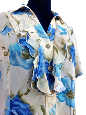 قميص - خط عنق شكل ـ V ـ، ياقة كلاسيكية، كتف عادي، أكمام قصيرة عادية (Plain) - أزرق, M