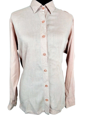 قميص - خط عنق شكل ـ V ـ، ياقة كلاسيكية، كتف عادي، أكمام طويلة عادية (Plain) - زهري, L