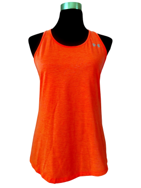 تيشيرت مريح (Relaxed) - خط عنق دائري، بدون ياقة، كتف من الحمّالات (Strap)، بدون أكمام - برتقالي, XS