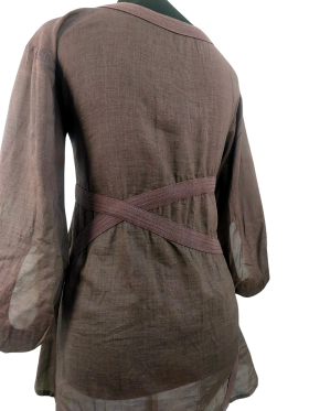 تونيك (Tunic) - خط عنق شكل ـ V ـ، بدون ياقة، كتف عادي، أكمام حتى الكوع عادية (Plain) - بني, S