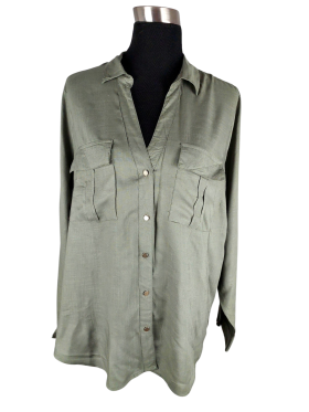 تونيك (Tunic) - خط عنق شكل ـ V ـ ياقة كلاسيكية كتف عادي أكمام طويلة عادية (Plain) - أخضر, مناسب لأكثر من قياس