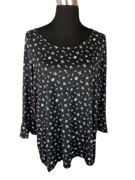 تونيك (Tunic) - خط عنق دائري بدون ياقة كتف عادي أكمام ثلاثة أرباع عادية (Plain) - كحلي, L