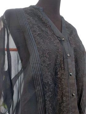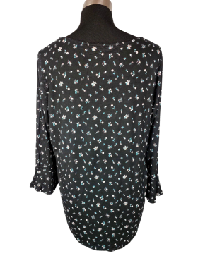 قميص - خط عنق شكل ـ V ـ، بدون ياقة، كتف عادي، أكمام قصيرة عادية (Plain) - أسود, XL