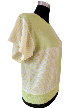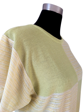 كنزة صوفية (Sweater) تلبس من فوق الرأس (Pullover) - خط عنق دائري، بدون ياقة، كتف عادي، أكمام قصيرة بشكل جرس (Bell) - أخضر, M