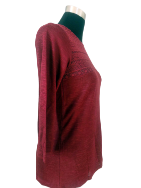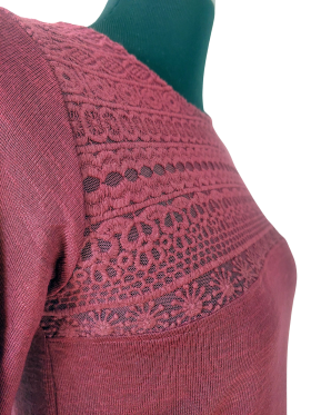 كنزة صوفية (Sweater) تلبس من فوق الرأس (Pullover) - خط عنق دائري، بدون ياقة، كتف عادي، أكمام طويلة عادية (Plain) - خمري, S