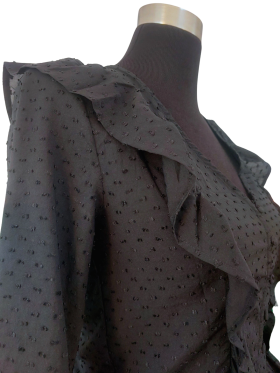 قميص - خط عنق شكل ـ V ـ، بدون ياقة، كتف عادي، أكمام طويلة عادية (Plain) - أسود, XS