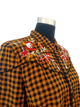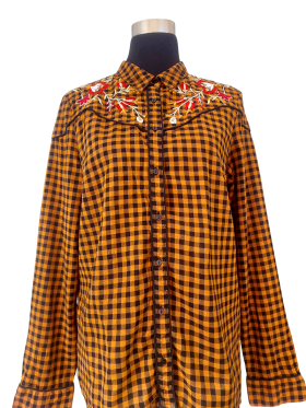 قميص - خط عنق شكل ـ V ـ، ياقة كلاسيكية، كتف عادي، أكمام طويلة عادية (Plain) - بني, L