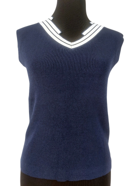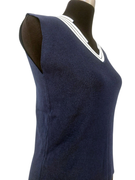 كنزة صوفية (Sweater) تلبس من فوق الرأس (Pullover) - خط عنق شكل ـ V ـ، بدون ياقة، كتف عادي، بدون أكمام - كحلي, مناسب لأكثر من قياس