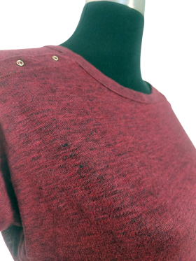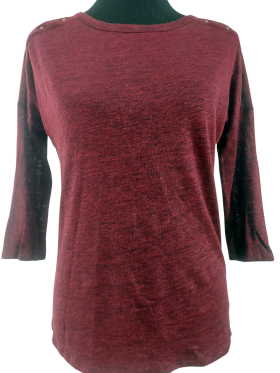 كنزة صوفية (Sweater) تلبس من فوق الرأس (Pullover) - خط عنق دائري، بدون ياقة، كتف عادي، أكمام ثلاثة أرباع عادية (Plain) - خمري, S