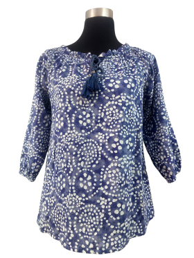 Blouse - Round neckline، No Collar، Regular shoulder، Long sleeve Plain - أزرق, M