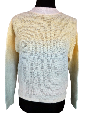 كنزة صوفية (Sweater) تلبس من فوق الرأس (Pullover) - خط عنق دائري، بدون ياقة، كتف عادي، عادية (Plain) أكمام طويلة - أصفر, مناسب لأكثر من قياس