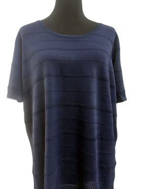 كنزة صوفية (Sweater) تلبس من فوق الرأس (Pullover) - خط عنق دائري، بدون ياقة، كتف عادي، أكمام قصيرة عادية (Plain) - كحلي, مناسب لأكثر من قياس