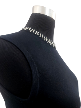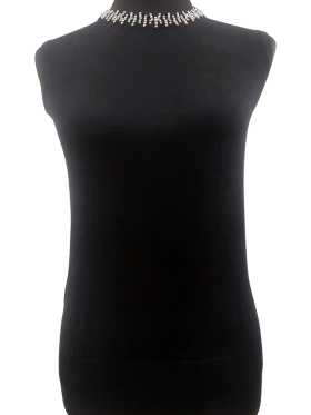كنزة صوفية (Sweater) تلبس من فوق الرأس (Pullover) - خط عنق دائري، بدون ياقة، كتف عادي، بدون أكمام - أسود, مناسب لأكثر من قياس