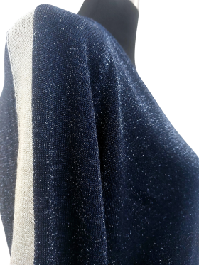 كنزة صوفية (Sweater) تلبس من فوق الرأس (Pullover) - خط عنق شكل ـ V ـ، بدون ياقة، كتف عادي، أكمام ثلاثة أرباع عادية (Plain) - كحلي, مناسب لأكثر من قياس
