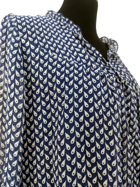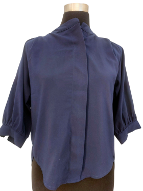 Blouse - Round neckline، Band Collar، Regular shoulder، Elbow sleeve Plain - كحلي, S/M