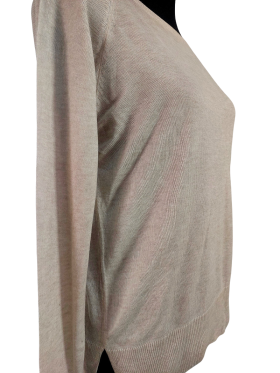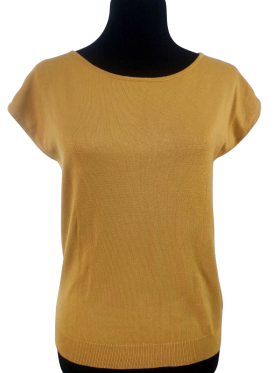 كنزة صوفية (Sweater) تلبس من فوق الرأس (Pullover) - خط عنق على شكل قارب (Boat)، بدون ياقة، كتف عادي، أكمام قصيرة على شكل كاب (Cap) - بني فاتح, M