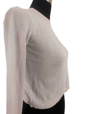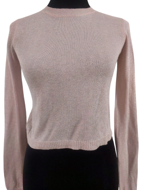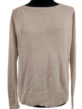 كنزة صوفية (Sweater) تلبس من فوق الرأس (Pullover) - خط عنق دائري، بدون ياقة، كتف عادي، أكمام طويلة عادية (Plain) - بني فاتح, XS