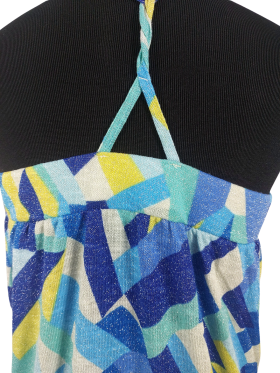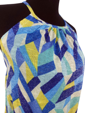كنزة صوفية (Sweater) تلبس من فوق الرأس (Pullover) - خط عنق دائري، بدون ياقة، كتف بحمالة رفيعة جدا (Spaghetti)، بدون أكمام - أزرق, XS