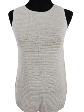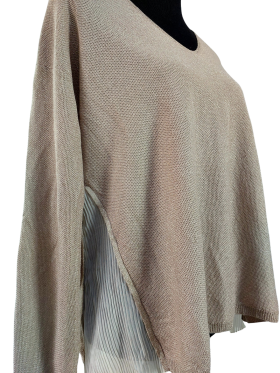 كنزة صوفية (Sweater) تلبس من فوق الرأس (Pullover) - خط عنق دائري، بدون ياقة، كتف عادي، بدون أكمام - بني فاتح, مناسب لأكثر من قياس
