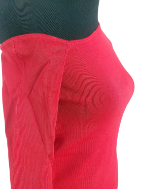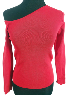 كنزة صوفية (Sweater) تلبس من فوق الرأس (Pullover) - خط عنق شكل ـ V ـ، بدون ياقة، كتف من جهة واحدة، أكمام طويلة عادية (Plain) - أحمر, مناسب لأكثر من قياس