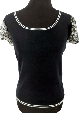 بلوزة - خط عنق دائري، بدون ياقة، كتف عادي، أكمام قصيرة بشكل جرس (Bell) - أسود, M/L