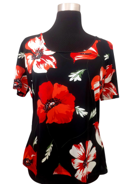 Blouse - Round neckline، No Collar، Regular shoulder، Short sleeve Plain - أسود, M/L