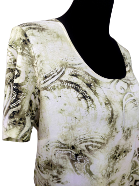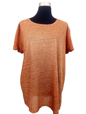 بلوزة - خط عنق دائري، بدون ياقة، كتف عادي، أكمام قصيرة عادية (Plain) - بني فاتح, XL