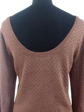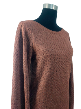 كنزة صوفية (Sweater) تلبس من فوق الرأس (Pullover) - خط عنق دائري، بدون ياقة، كتف عادي، أكمام طويلة عادية (Plain) - بني, M