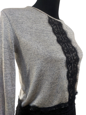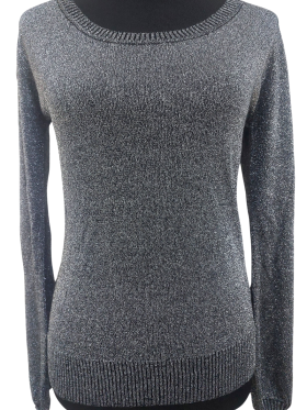 كنزة صوفية (Sweater) تلبس من فوق الرأس (Pullover) - خط عنق دائري، بدون ياقة، كتف عادي، أكمام طويلة عادية (Plain) - رمادي, M