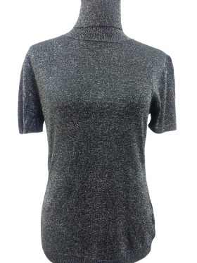 كنزة صوفية (Sweater) تلبس من فوق الرأس (Pullover) - خط عنق مرتفع (Turtleneck)، بدون ياقة، كتف عادي، أكمام قصيرة عادية (Plain) - رمادي, L