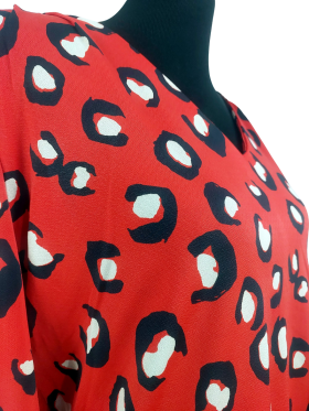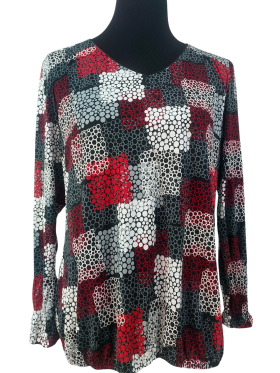 بلوزة - خط عنق شكل ـ V ـ، بدون ياقة، كتف عادي، أكمام طويلة عادية (Plain) - أحمر, L