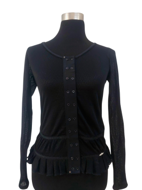 بلوزة - خط عنق دائري، بدون ياقة، كتف عادي، أكمام طويلة عادية (Plain) - أسود, M