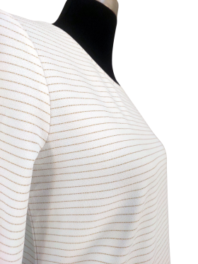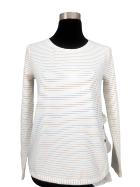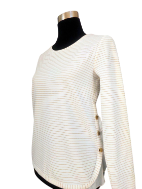 بلوزة - خط عنق دائري، بدون ياقة، كتف عادي، أكمام طويلة عادية (Plain) - عاجي, مناسب لأكثر من قياس