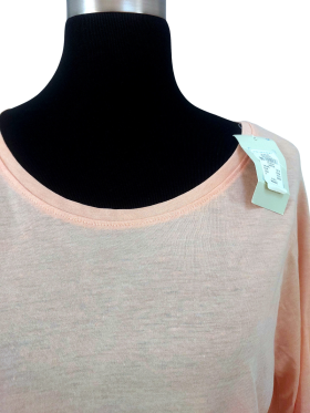 تيشيرت فضفاض (Relaxed) - خط عنق دائري، بدون ياقة، كتف عادي، أكمام طويلة عادية (Plain) - برتقالي, L