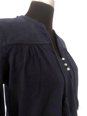 بلوزة - خط عنق شكل ـ V ـ، بياقة، كتف عادي، أكمام طويلة عادية (Plain) - كحلي, مناسب لأكثر من قياس