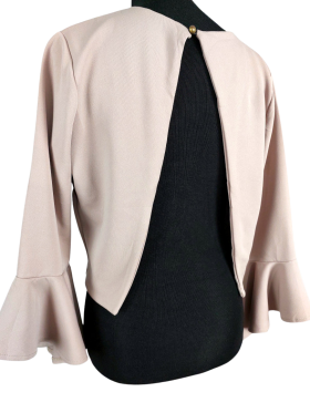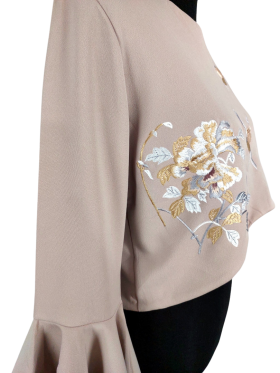 Blouse - Round neckline، No Collar، Regular shoulder، Extra-long sleeve Bell - بني فاتح, L