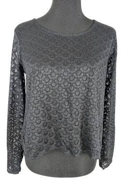 Blouse - Round neckline، No Collar، Regular shoulder، Long sleeve Plain - أسود, M