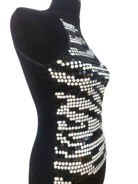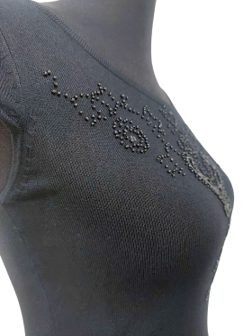كنزة صوفية (Sweater) تلبس من فوق الرأس (Pullover) - خط عنق دائري، بدون ياقة، كتف من الحمّالات (Strap)، بدون أكمام - أسود, S