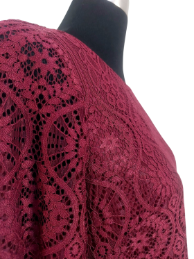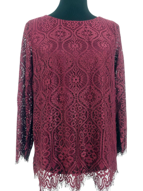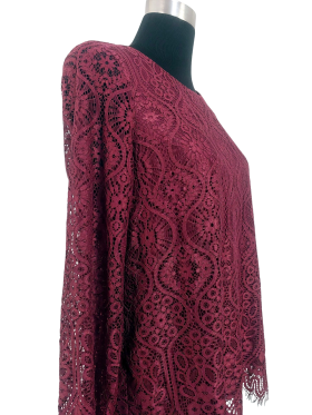 بلوزة - خط عنق دائري، بدون ياقة، كتف عادي، أكمام طويلة عادية (Plain) - خمري, M
