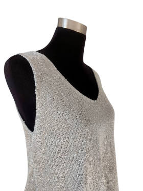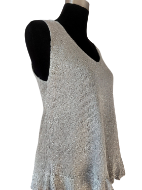 كنزة صوفية (Sweater) تلبس من فوق الرأس (Pullover) - خط عنق شكل ـ V ـ، بدون ياقة، كتف من الحمّالات (Strap)، بدون أكمام - رمادي, L