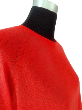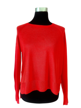كنزة صوفية (Sweater) تلبس من فوق الرأس (Pullover) - خط عنق دائري، بدون ياقة، كتف عادي، أكمام طويلة عادية (Plain) - أحمر, S