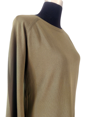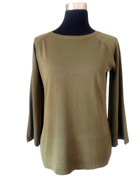 كنزة صوفية (Sweater) تلبس من فوق الرأس (Pullover) - خط عنق دائري، بدون ياقة، كتف عادي، أكمام طويلة بشكل جرس (Bell) - أخضر, مناسب لأكثر من قياس