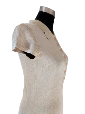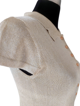 كنزة صوفية (Sweater) تلبس من فوق الرأس (Pullover) - خط عنق دائري، ياقة كلاسيكية، كتف عادي، أكمام قصيرة على شكل كاب (Cap) - عاجي, M