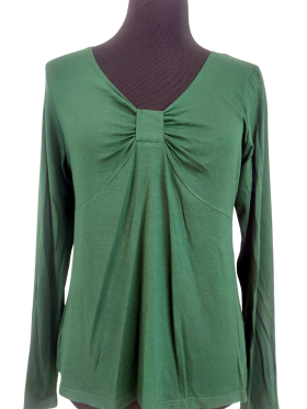 بلوزة - خط عنق شكل ـ V ـ، بدون ياقة، كتف عادي، أكمام طويلة عادية (Plain) - أخضر, L