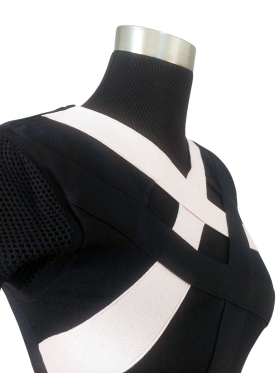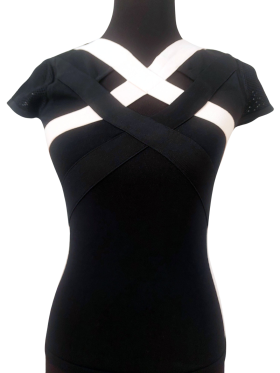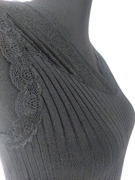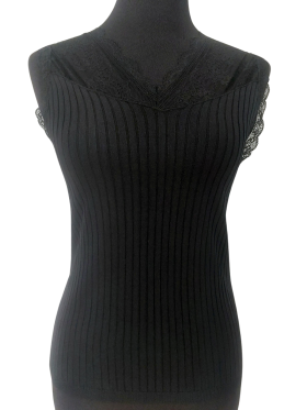 كنزة صوفية (Sweater) تلبس من فوق الرأس (Pullover) - خط عنق شكل ـ V ـ، بدون ياقة، كتف من الحمّالات (Strap)، بدون أكمام - أسود, XS