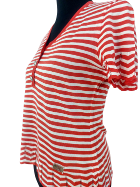 كنزة صوفية (Sweater) تلبس من فوق الرأس (Pullover) - خط عنق شكل ـ V ـ، بدون ياقة، كتف عادي، أكمام قصيرة عادية (Plain) - أحمر, M