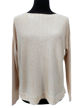 كنزة صوفية (Sweater) تلبس من فوق الرأس (Pullover) - خط عنق على شكل قارب (Boat)، بدون ياقة، كتف عادي، أكمام طويلة عادية (Plain) - بني فاتح, L
