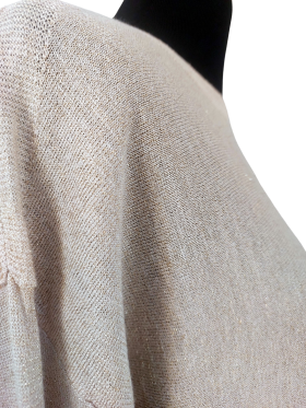 كنزة صوفية (Sweater) تلبس من فوق الرأس (Pullover) - خط عنق دائري، بدون ياقة، كتف عادي، أكمام طويلة عادية (Plain) - بني فاتح, مناسب لأكثر من قياس
